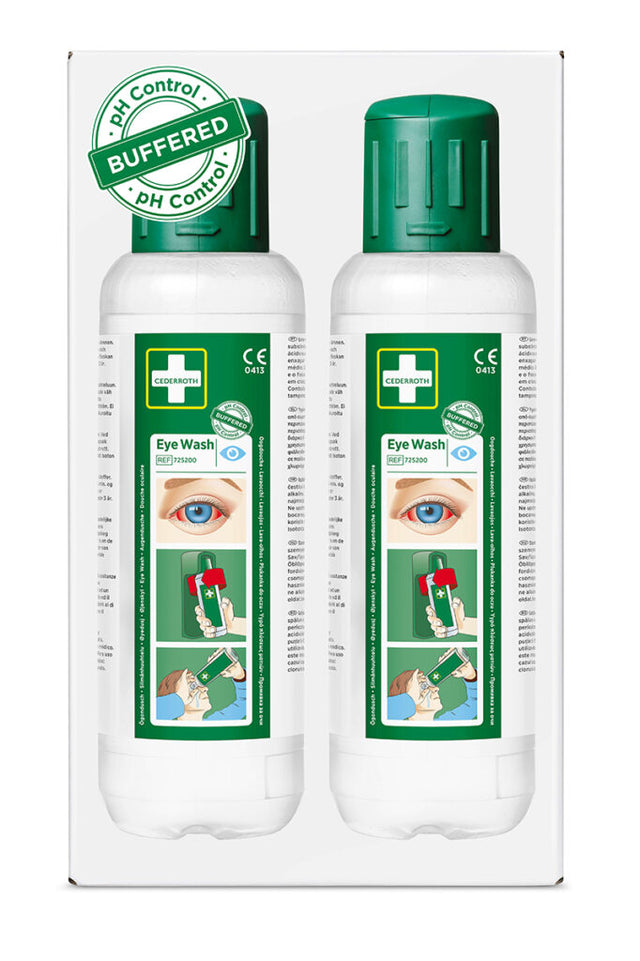 Die Cederroth Augenspüllösung gleicht den pH-Wert im Auge aus, d. h. sie neutralisiert Alkali- und Säurespritzer. Dabei wirkt sie schneller als herkömmliche Kochsalzlösung. Die Wirkung ist bei Alkalien generell stärker als bei Säuren. Haltbarkeit: Beeindruckende 4,5 Jahre. Bei Unfällen mit kalkhaltigen Stoffen (z. B. Zement, Beton oder Kalk) kann die Cederroth Augendusche unbesorgt zum Spülen eingesetzt werden: für eine optimale Spülung ist die Augenspüllösung 100% phosphatfrei.
