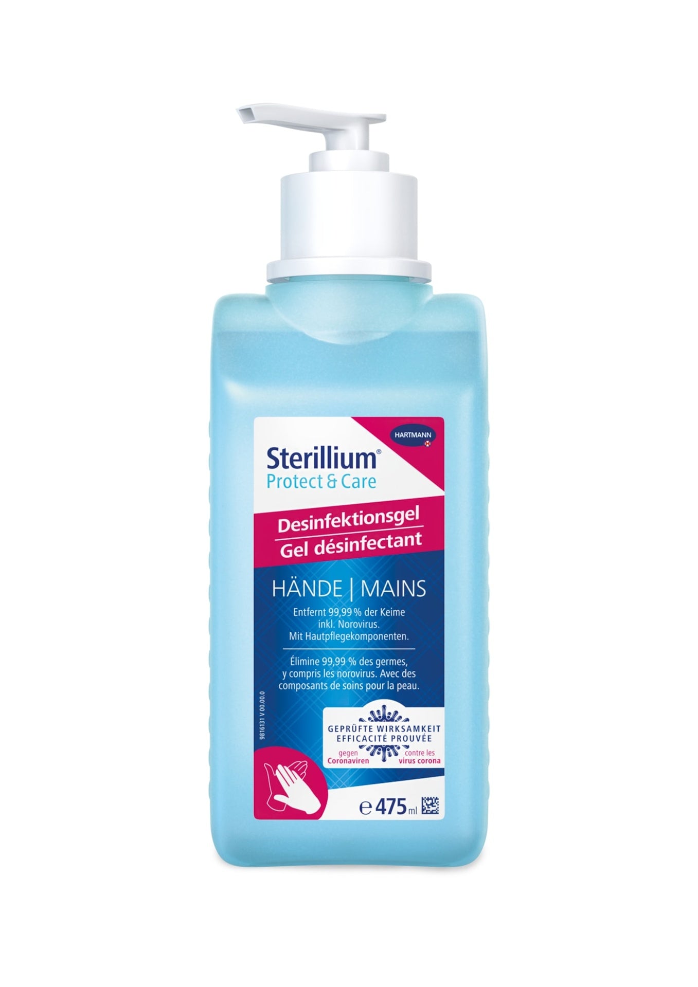 Sterillium Protect und Care: Das bewährte Desinfektionsgel für die Hände. Praktisches und umfassend wirksames Händedesinfektionsgel mit feuchtigkeitsspendenden Pflegekomponenten. Gebrauchsfertiges alkoholisches Einreibepräparat - unabhängig von Wasser und Waschbecken - zur hygienischen Händedesinfektion für zu Hause und unterwegs entfernt 99,99% der Keime kurze Einwirkzeit 30 Sek., Norovirus ab 15 Sek sehr gute Hautverträglichkeit erhöht die Hautfeuchtigkeit tropfsichere Dosierung trocknet schnell hinterlässt keine klebrigen Rückstände dermatologisch getestet Ethanol 850 mg/g Dank seiner Formulierung mit 85g Ethanol schnell wirksam gegen -Bakterien, Pilze und behüllte Viren (inkl. Coronavirus), sowie Noro- und Rotavirus. für jeden Bedarf die richtige Grösse (35 ml, 50ml, 100 ml, 475 ml) Desinfektionsmittel vorsichtig verwenden. Vor Gebrauch stets Etikett und Produktinformation lesen.